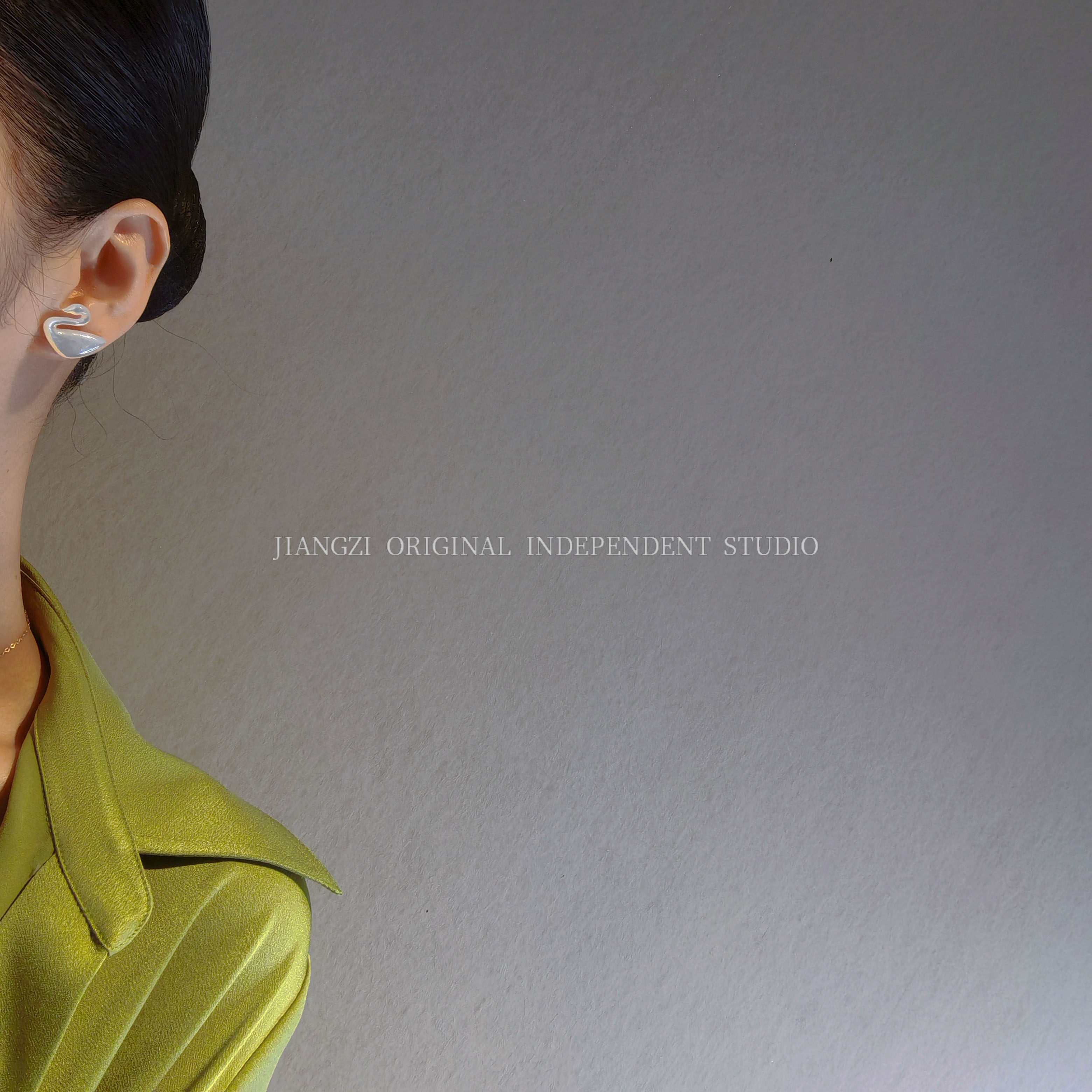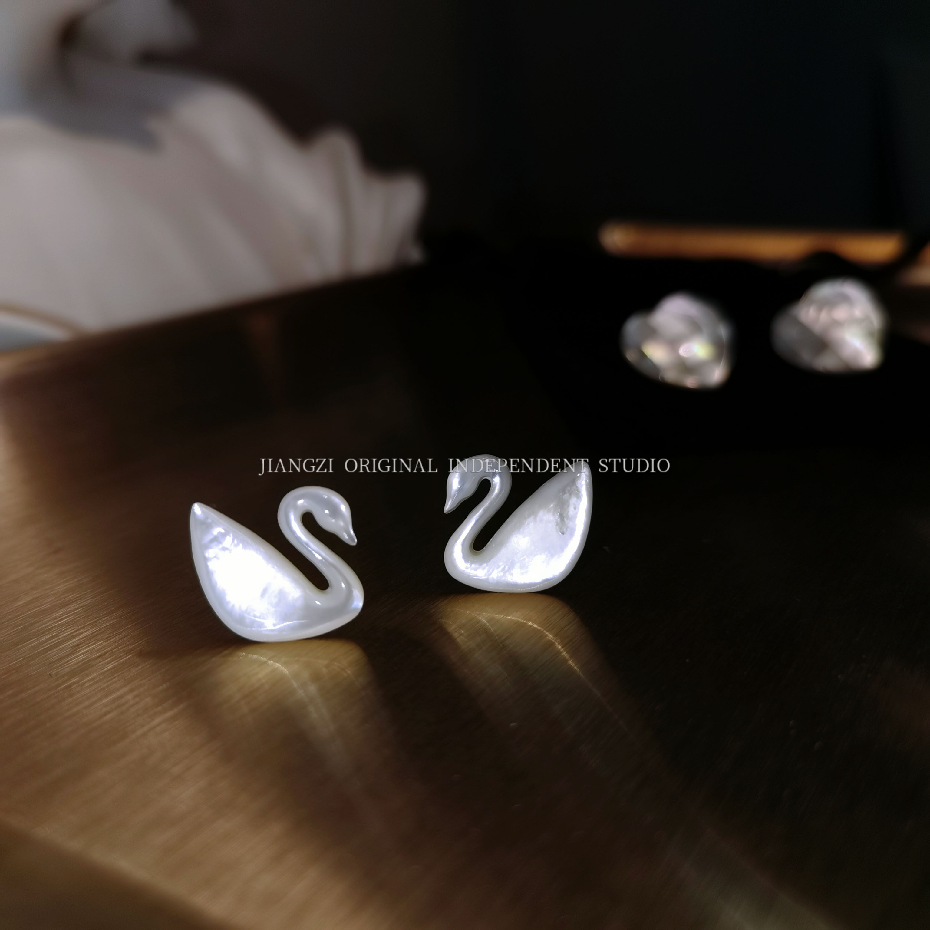 JZ STU Peach Heart Mosaic Swan Pearl Bay Shell Original Handmade S925 Silver Needle Retro Ear