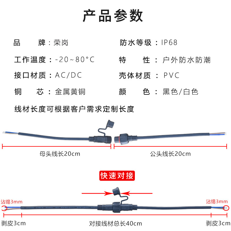 Outdoor Band Dust Cap Male Head Plug LED Power Cord Aviation Industry Primary-secondary socket 2 Core -8 Core Optional