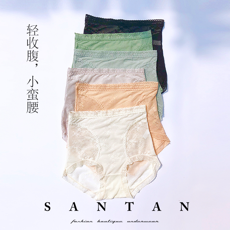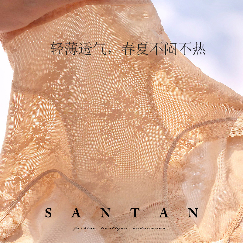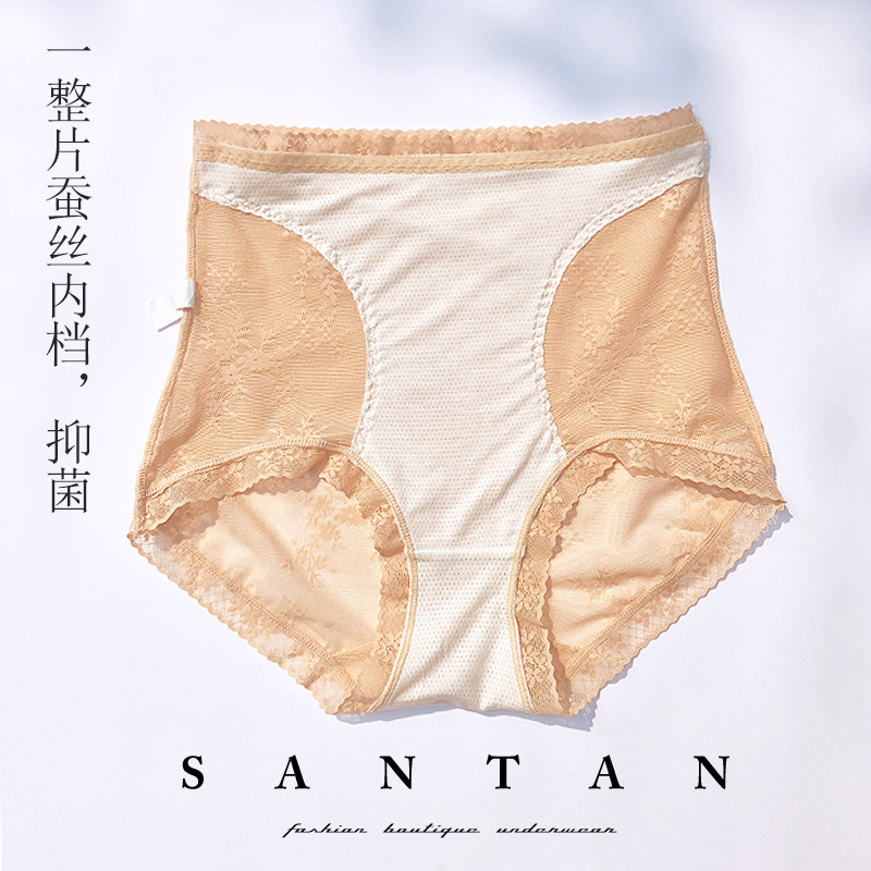 High waist light corset underwear ladies mulberry silk antibacterial crotch sexy European and American mesh lace mid-waist women's summer thin section