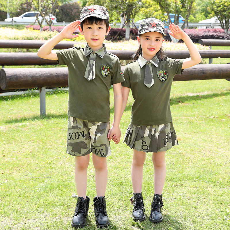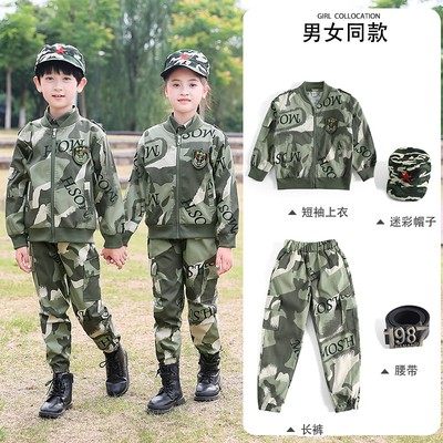 Children's camouflan suit for male and female students to perform military training costumes Spring and Autumn Thin Section Sports Short Sleeve Summer Camp
