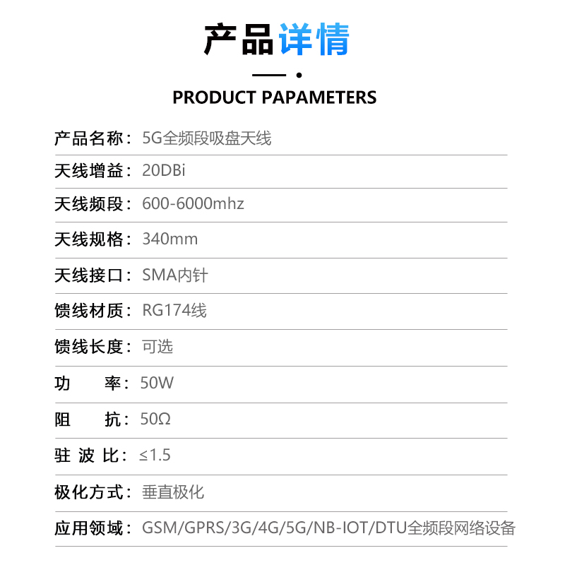 5G full-band small suction cup antenna NB GSM GPRS 4G vending machine Internet of things omnidirectional 20DB antenna