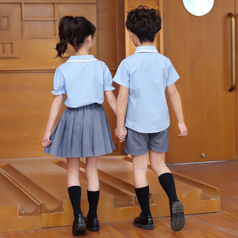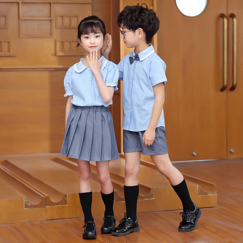 Elementary School Uniforms Summer Clothing Shirts Banfu Graduation Photos of the School Wind suit Short sleeves Kindergarten Garden Costume Season