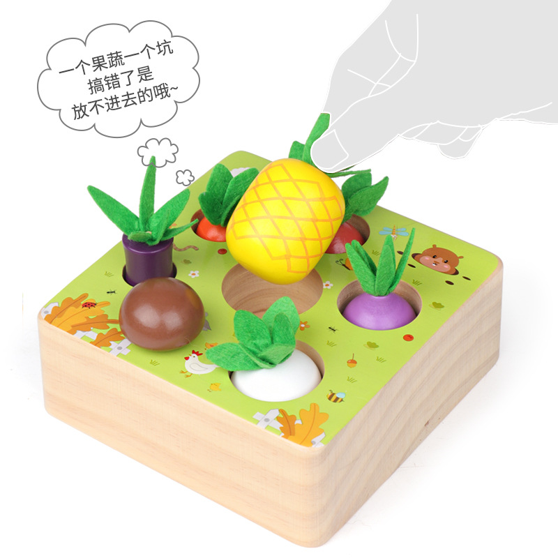 Infant children's puzzle toys catch insect wood triple in one happy farm magnetic fishing and pull radish catch worm