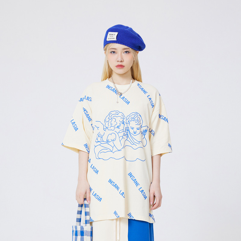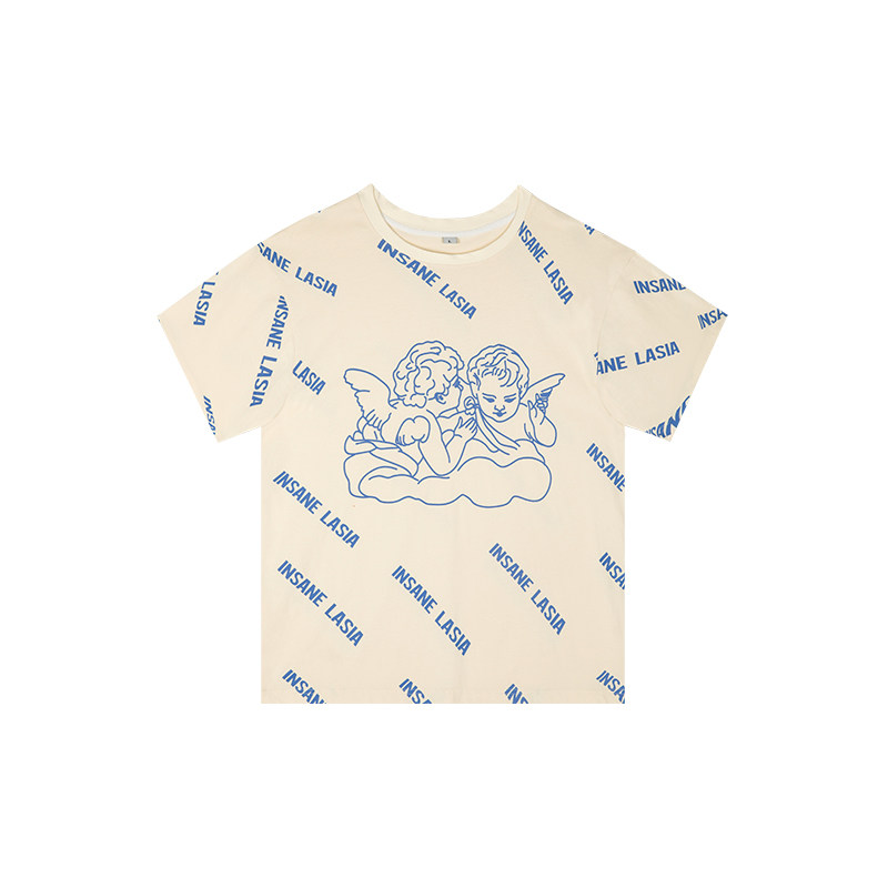 INSNLASIA original angel full print short-sleeved retro lazy tide brand men and women pullover couple T-shirt