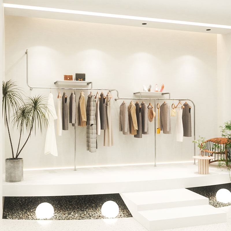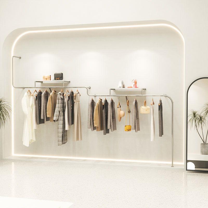 Clothing Shop Stainless Steel Wire Drawing Bilayer With Board Show Shelf Men And Women Children's Clothing Store Shelves Display Rack Creativity Hanging Clothes