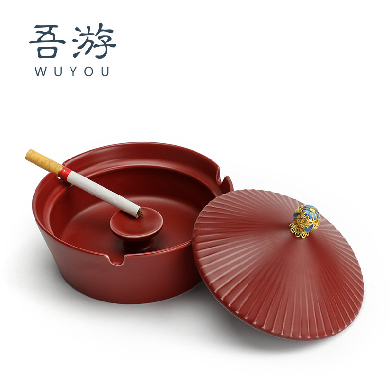 Wuyou ashtray wedding supplies home living room with lid anti-fly ash creative ceramic red national tide high-end ashtray