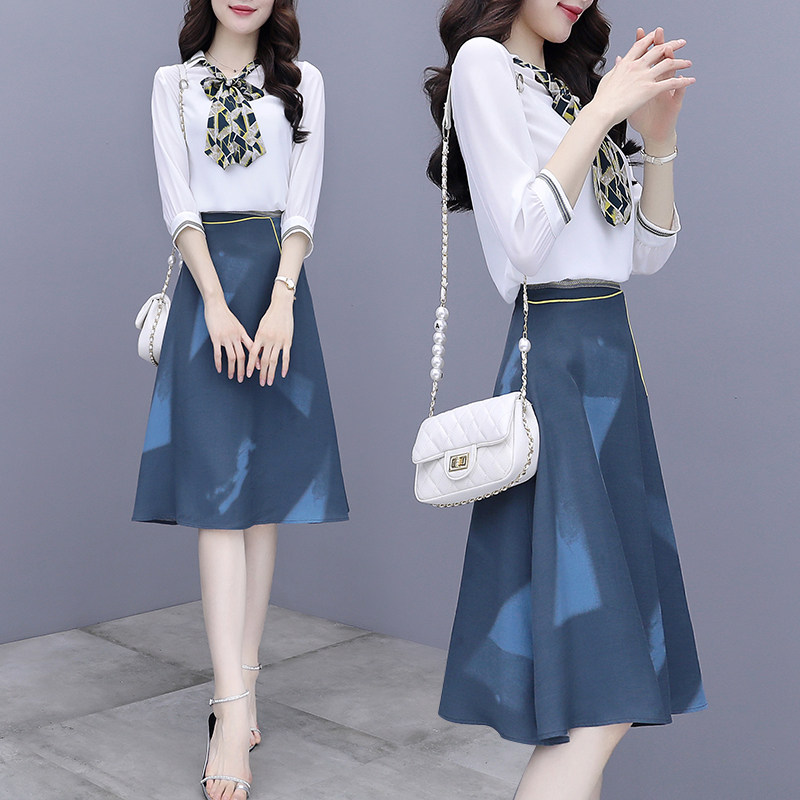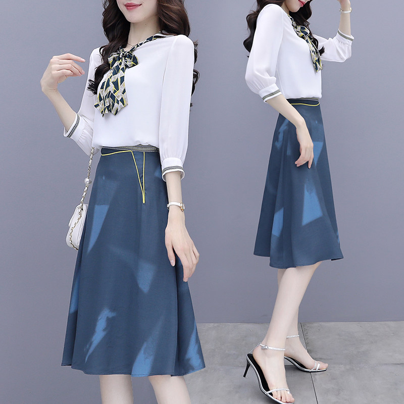 Spring 2022 new women's chiffon dress summer small man temperament slim shirt two-piece set skirt