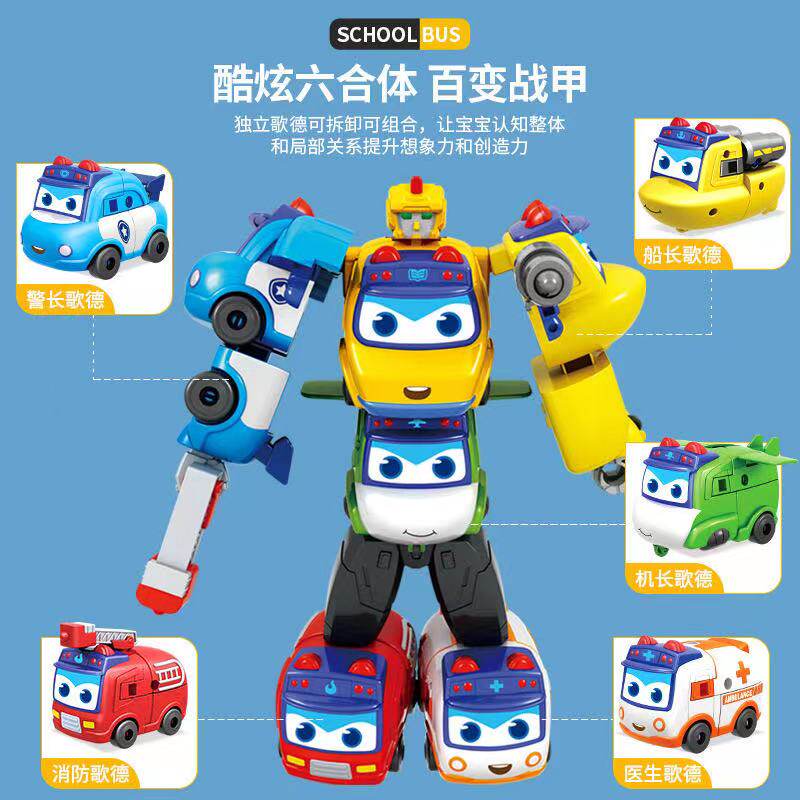 Genuine Variety School Bus 3 Goethe 6 in 1 puzzle coasting assembly deformation car gift box toy birthday 4 gift