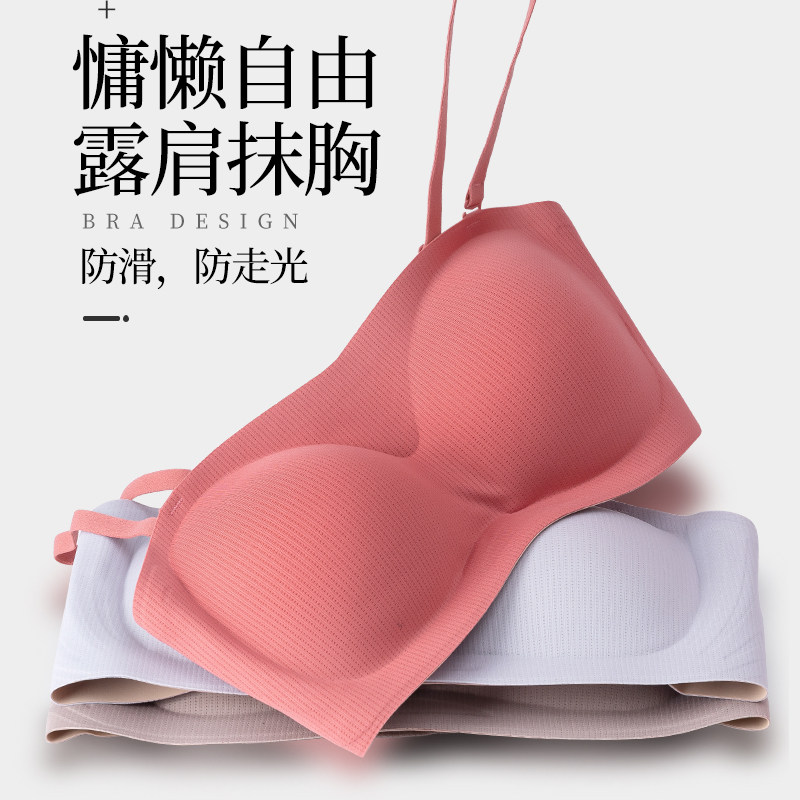 Latex tube top underwear women's strapless gathered non-slip small chest bra wedding dress bra tube top type anti-light wrap chest
