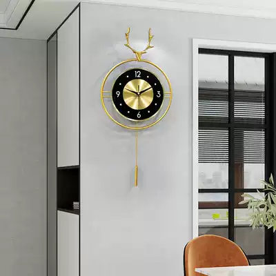 Deer head wall clock Modern simple light luxury living room wall clock net red wall clock punch-free personality decorative clock
