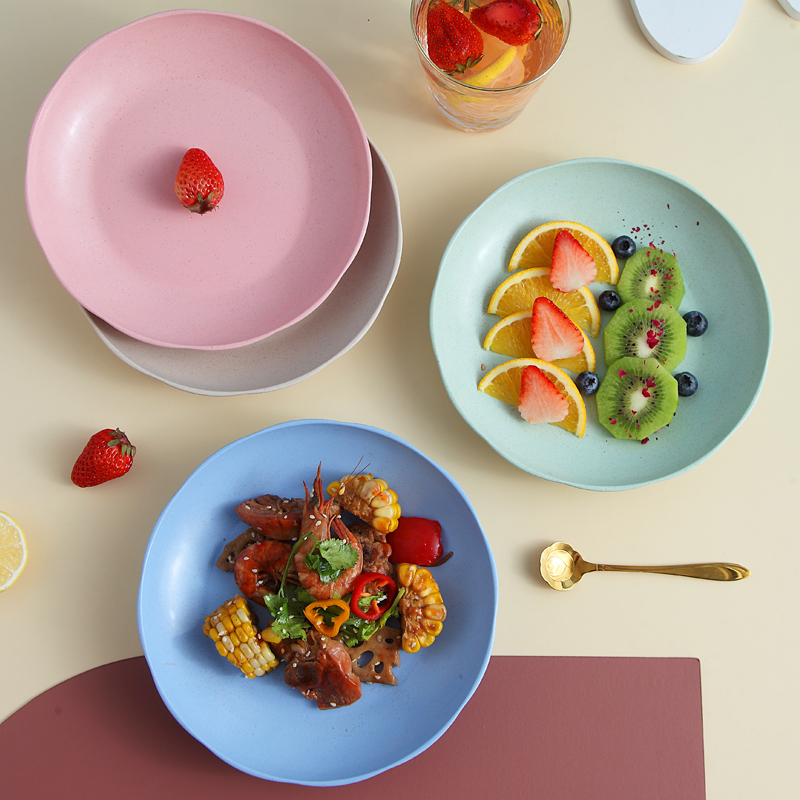 Japanese plate dish household network red tableware plastic circular anti-fall fruit plate Nordic dish in wind