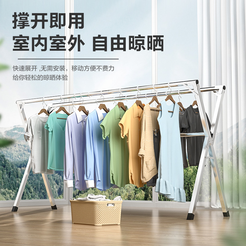 Stainless Steel Clotheshorse Ground Double-Folds Fold indoor balcony Clotheshorse Sunburn Quilt God Instrumental Home Clotheshorse