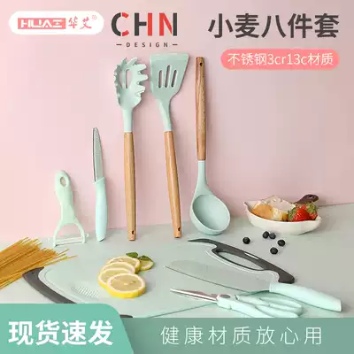 Green(commercial recommended) Chopping board chopper knife soup leakage shovel scissors planer 8-piece set Green(food grade silicone kitchenware) Chopping board chopper soup leakage shovel planer 6-piece set Green(kitchen essential set)Chopping board chopper soup