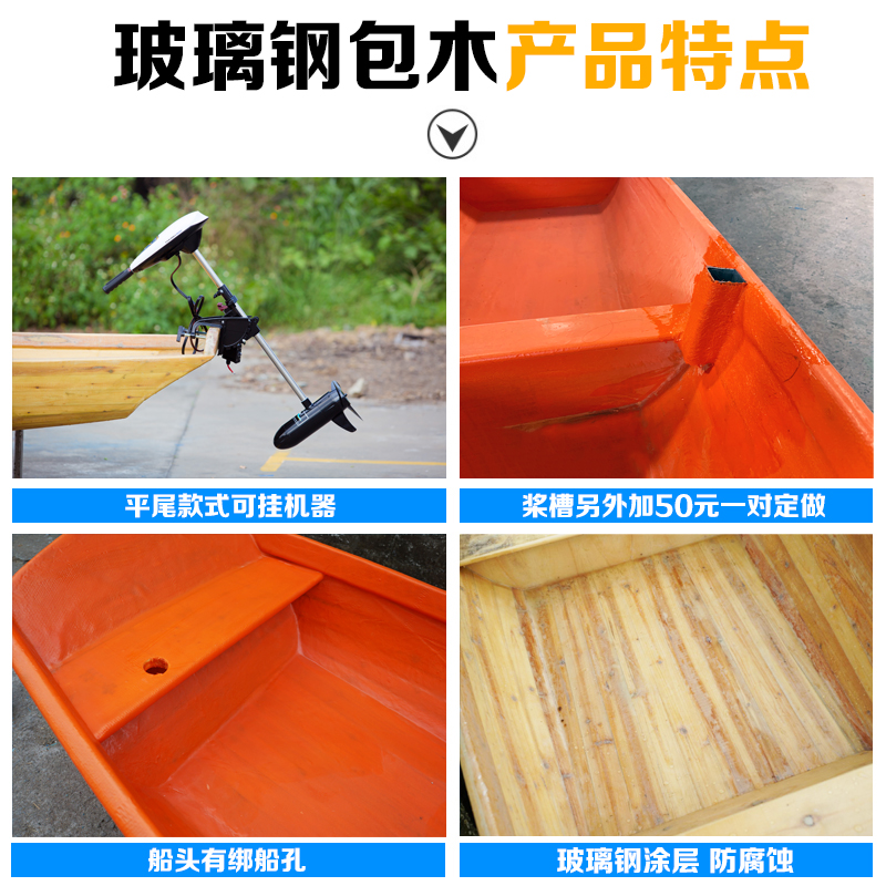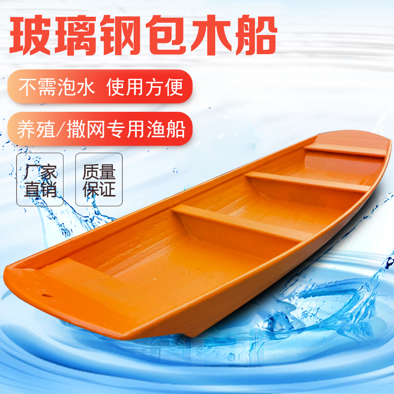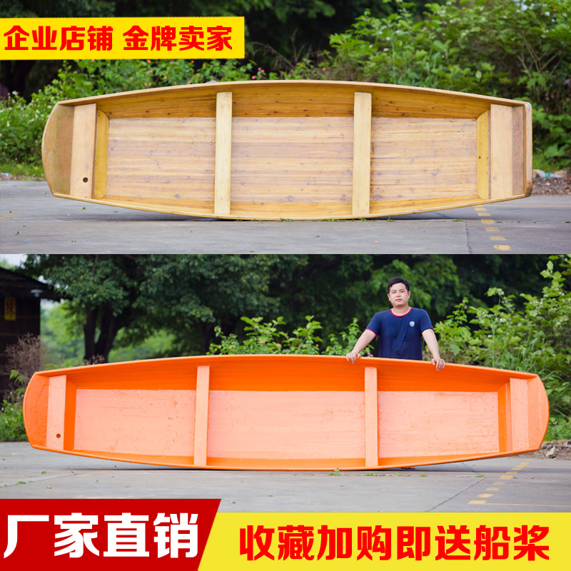 Fiberglass wooden boat fishing boat solid wood antique fishing boat sightseeing boat breeding boat small thickened rubber boat hand rowing boat