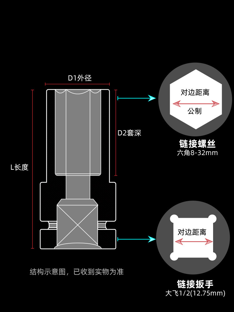 Electric screwdriver socket head Dafei inner hexagon pneumatic wrench electric hexagon screw extension sleeve set 8 combination 32mm
