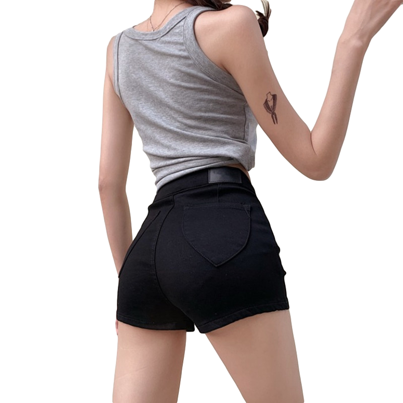 Diitudun retro black shorts women 2021 Summer new Korean version port Taste High Waisted Jeans Fashion Stretch Pants