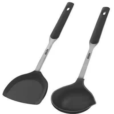 Household stainless steel silicone cooking shovel non-stick pot special spatula high temperature resistant spoon stainless steel kitchenware set