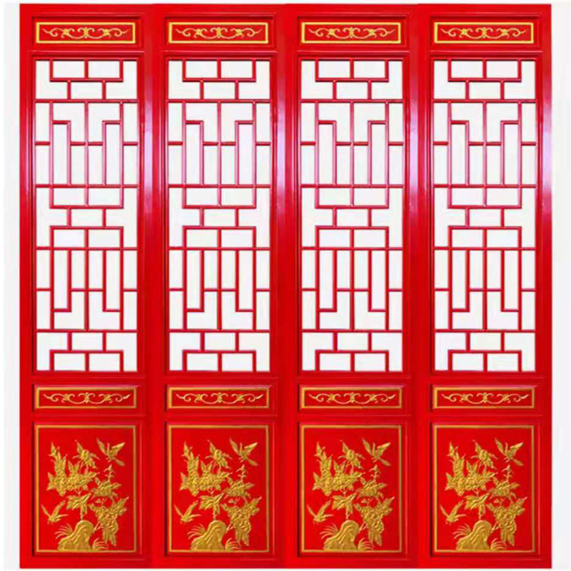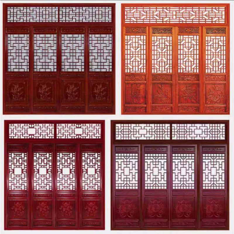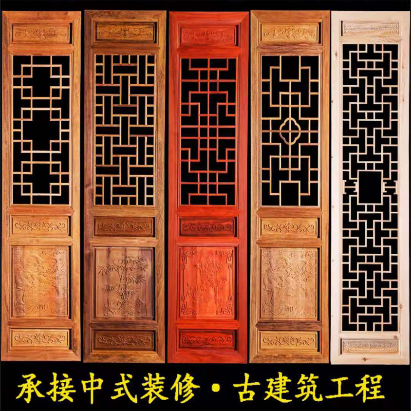 Antique solid wood doors and windows wooden grill background wall hollow partition screen Dongyang wood carving Chinese style decoration temple project