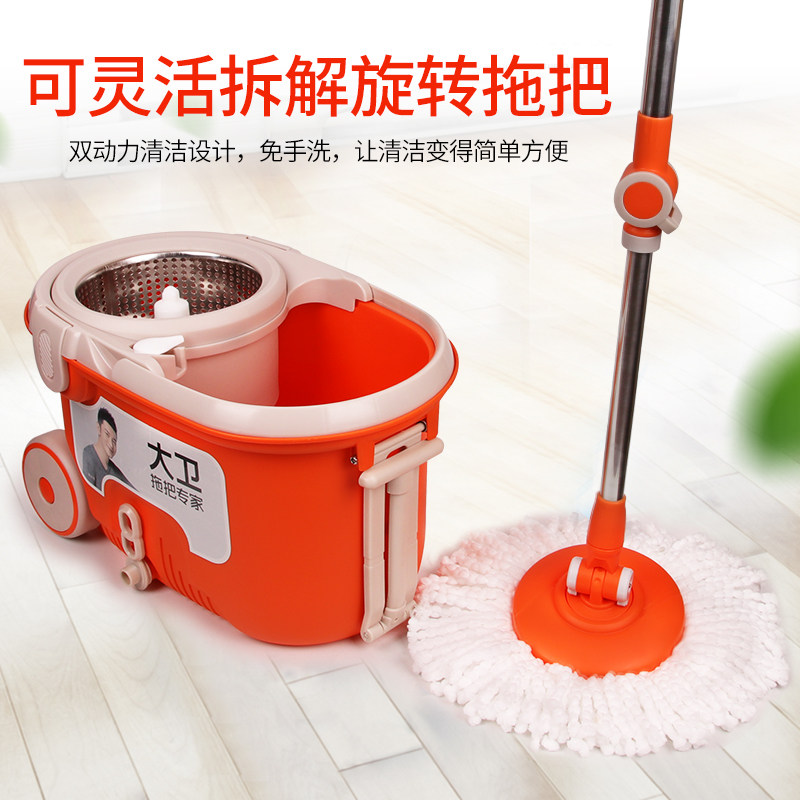 David rotating mop bucket with wheel bar universal one-mop hand-free household lazy drag net mop topological mop
