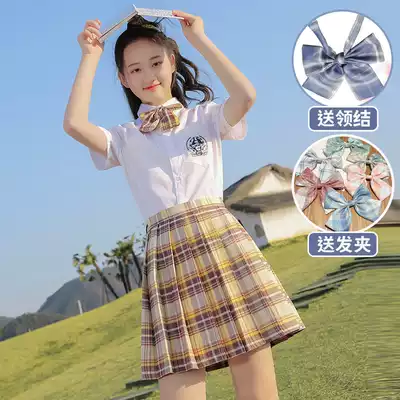 Girls jk uniform skirt genuine 10 primary school students 12-year-old girls summer clothes Female big children summer college style school uniform set