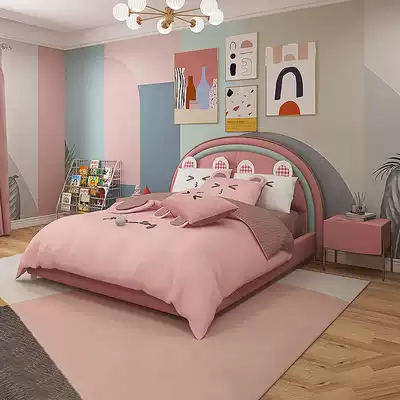 Rainbow children's bed Girl princess bed Modern simple single solid wood net red boy cartoon girl soft bag bed