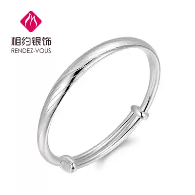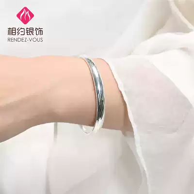 High-end high-end silver jewelry 999 foot silver bracelet rainbow brushed simple glossy silver bracelet women's push-pull buckle