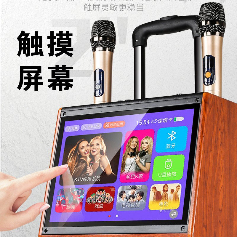 Changhong Square Dance Audio With Display Screen Outdoor K Song Speaker Dancing Video Machine Bluetooth Wireless Microphone Pull Rod Home Mobile KTV High Power Intelligent Portable Singing Karaoke All in One