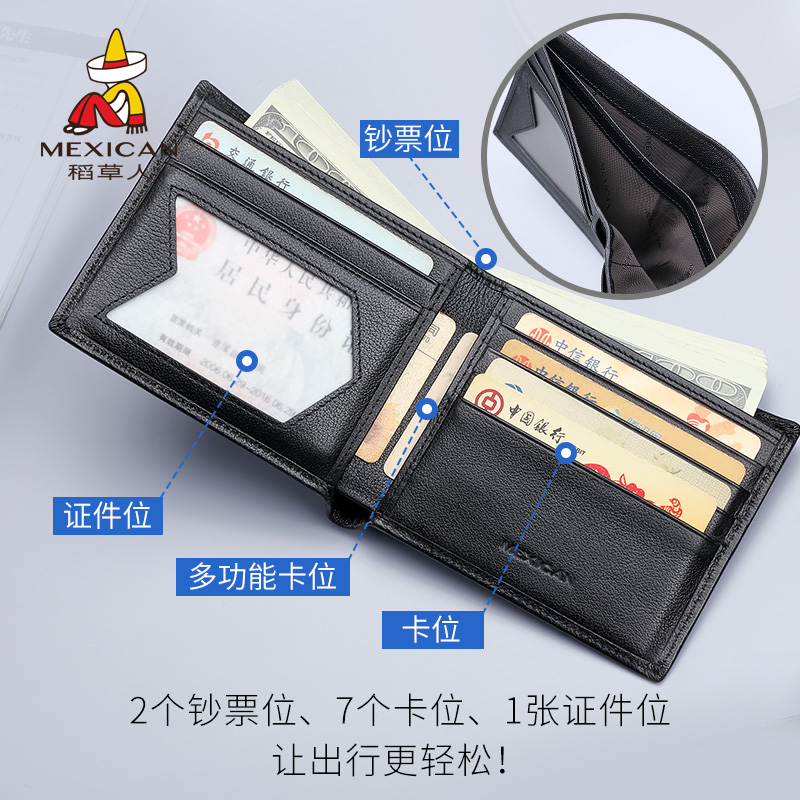 Rice Straw Man Wallet Man Genuine Leather Short student Men's brief Tide Card Youth Male's Bull Leather Wallet 2021 new