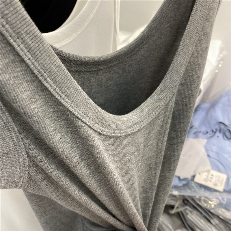 Eurostock pure color 100 lap thread vest small harnesses women 2022 summer fit new tight movement ruffles back blouses