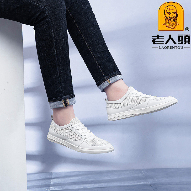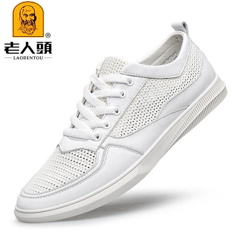 Old man's head men's shoes genuine leather hollowed-out light and lightweight slim net shoes men's deodorant soft-bottom mesh face small white shoes sneakers