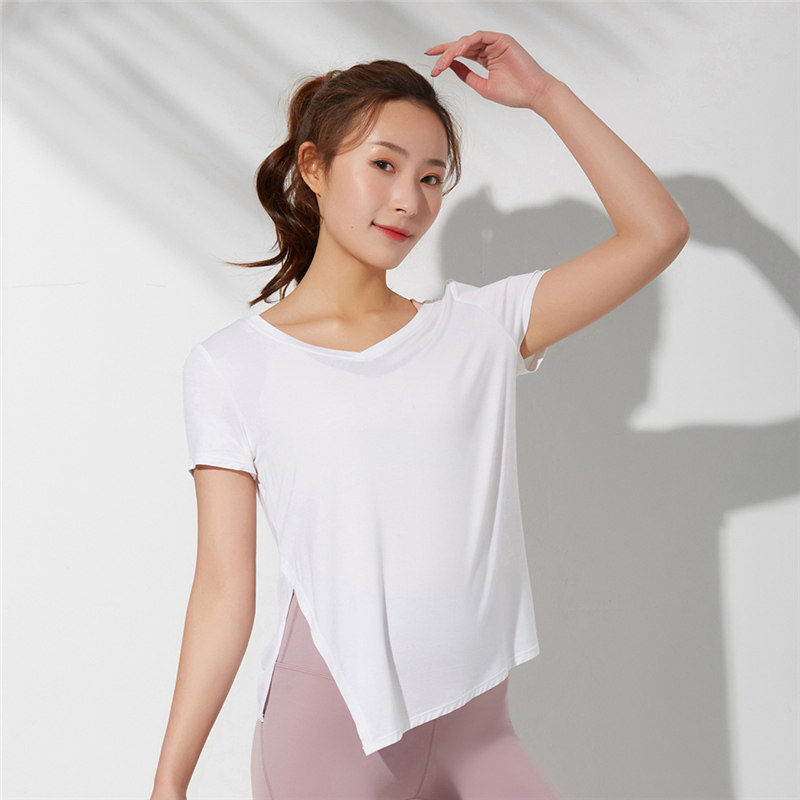 Spring and summer new side split sports short-sleeved women's loose yoga top women's hem blouse fitness clothes T-shirt women