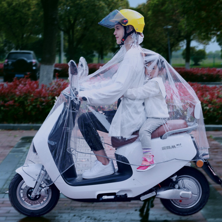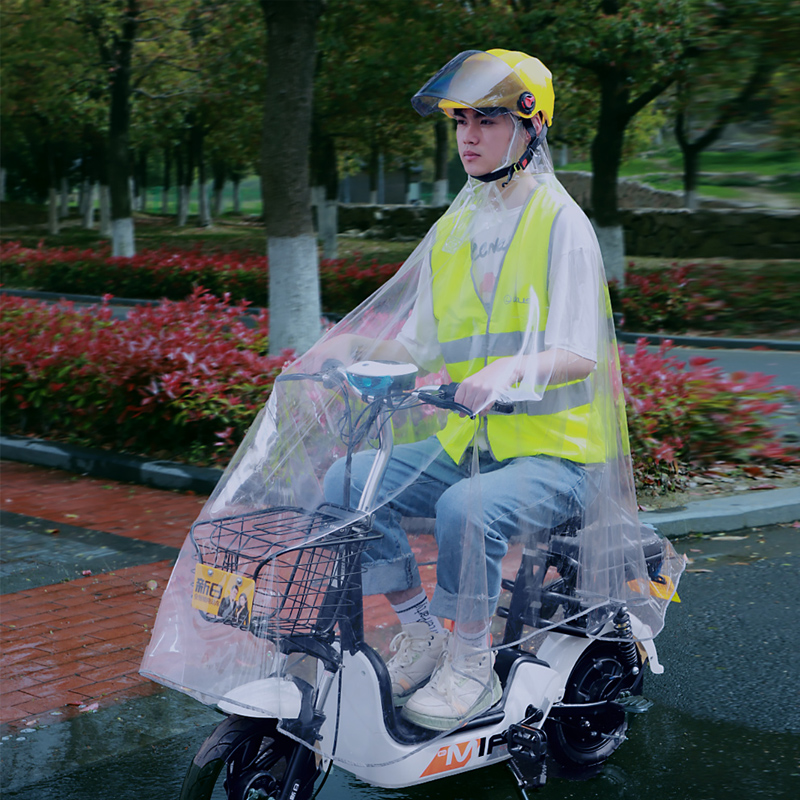 Cycling Padded Raincoat Electric Vehicle Mother and Child Single Motorcycle Unisex Delivery Agent Long Edition Rainproof Full Transparent