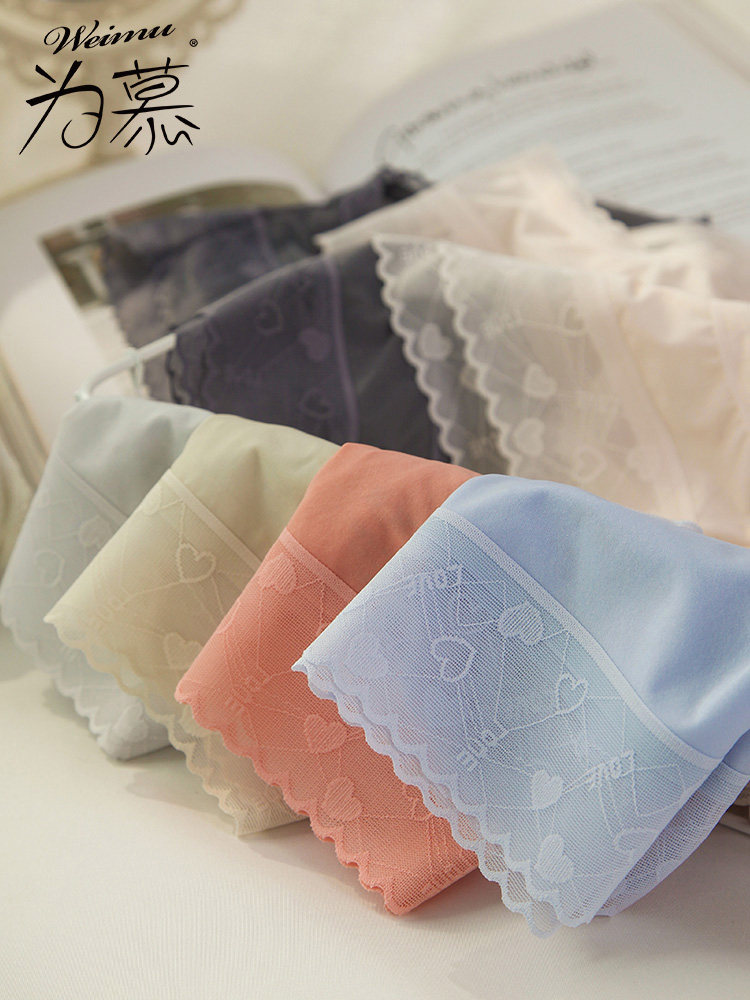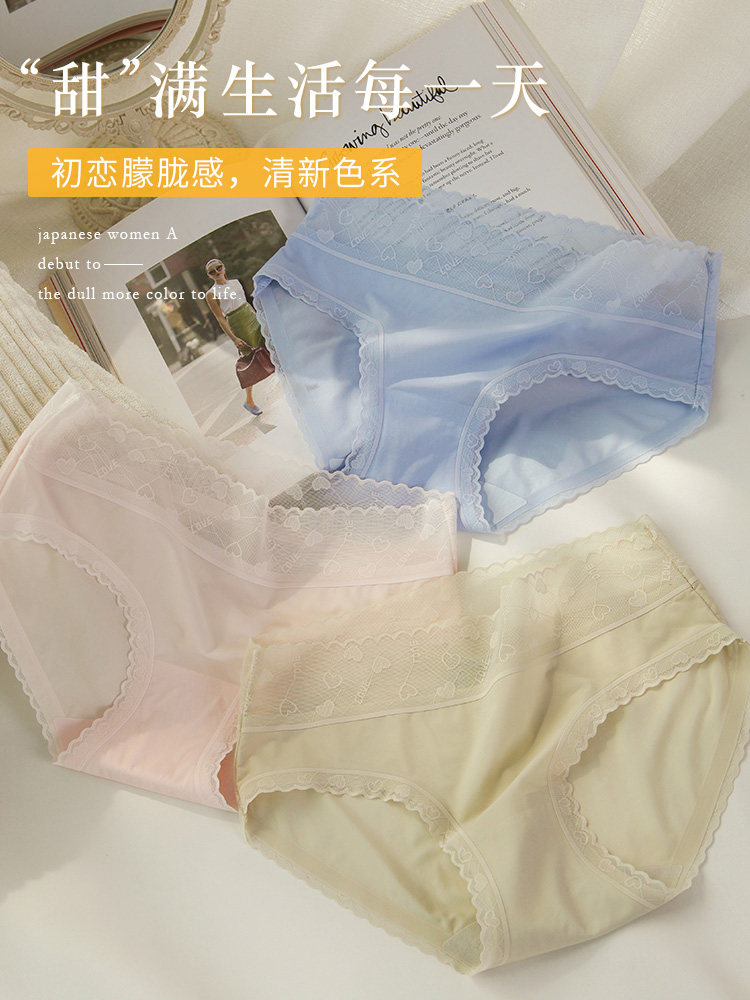 Ice silk underwear women's pure cotton crotch antibacterial breathable thin section mid-low waist sexy Japanese girls lace seamless briefs