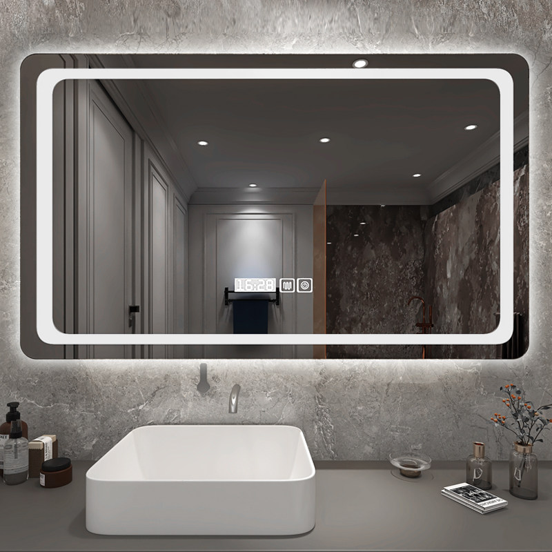 Nordic smart bathroom mirror with light backlight warm and cold touch screen Anti-fog powder room LED makeup mirror square hanging mirror