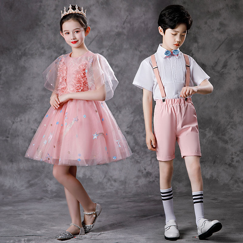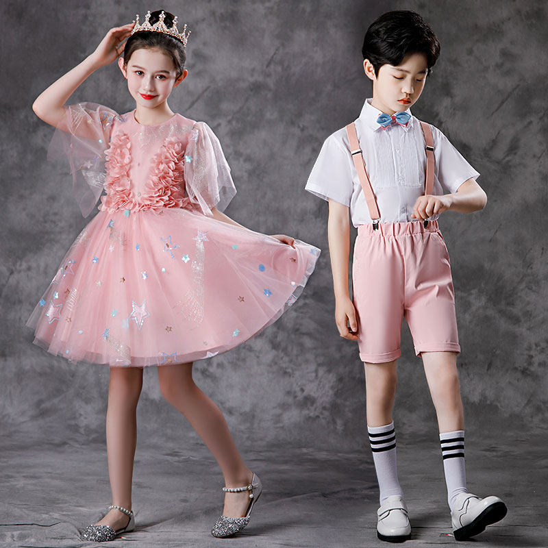 61 Children's Chorus Dress Rehearsal For Kindergarten Girl Fluffy Skirt School Students Poetry Recital Performance Costumes