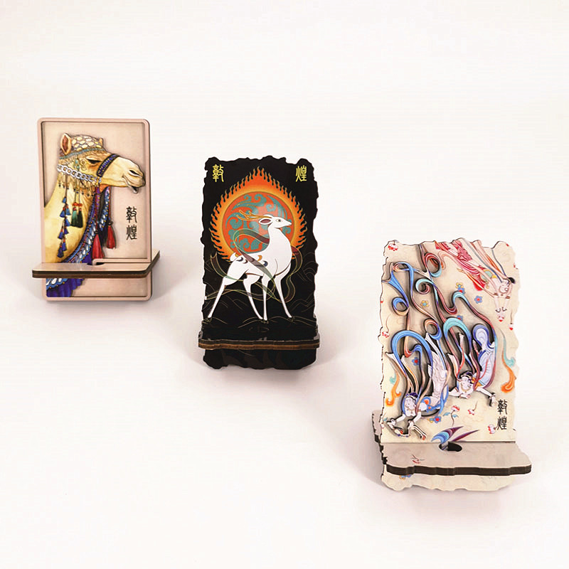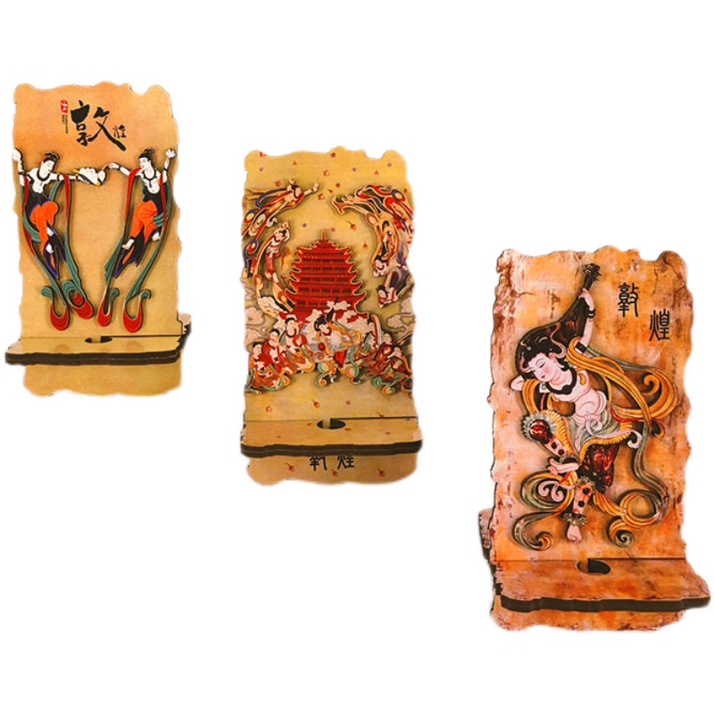 Gansu Dunhuang special gift tourist souvenir mobile phone rack Mogao Grottoes mural desktop decoration wooden