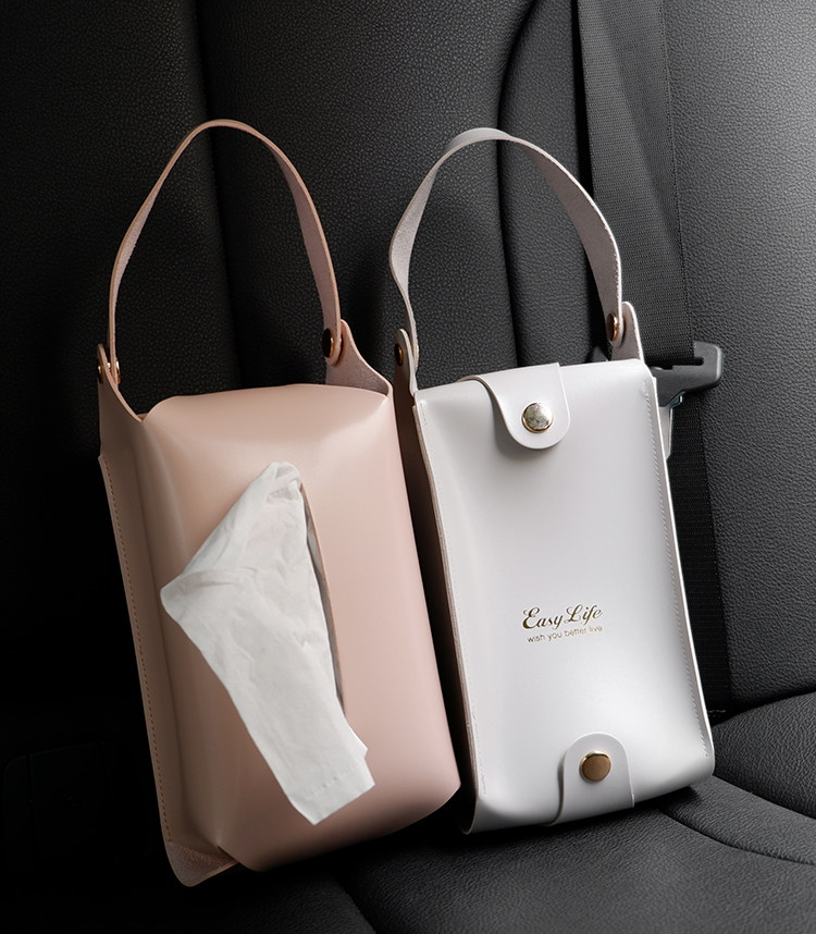 Nordic style hanging tissue box car seat back leather toilet paper box simple rectangular dressing room household tissue bag