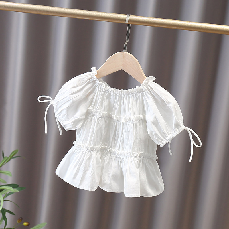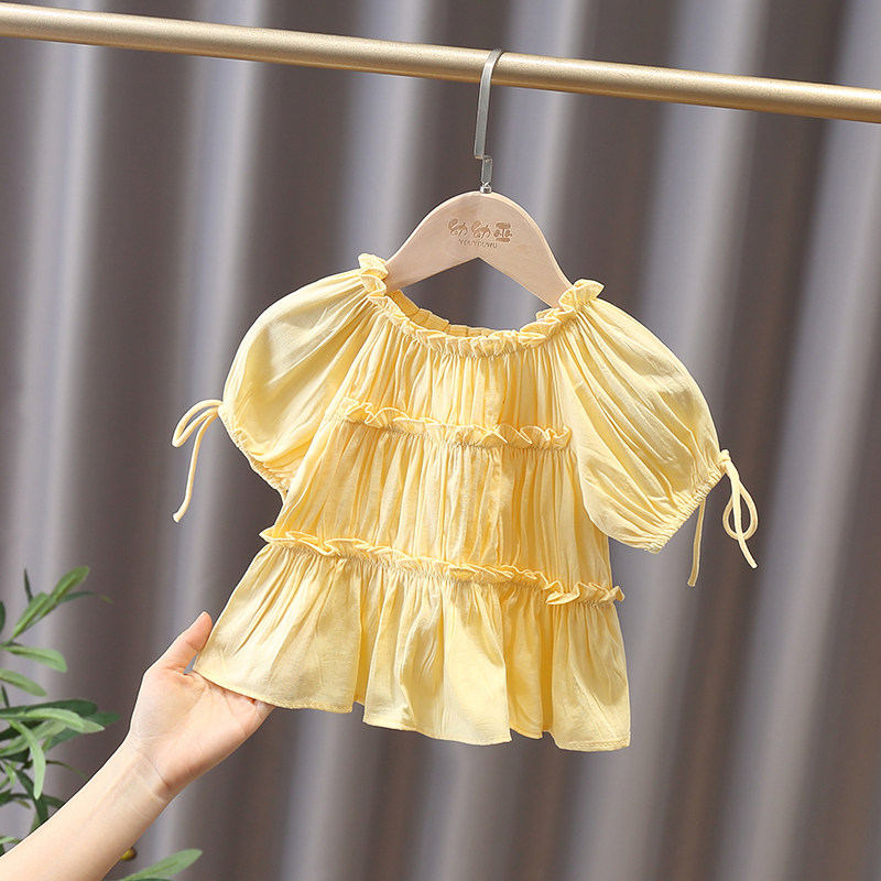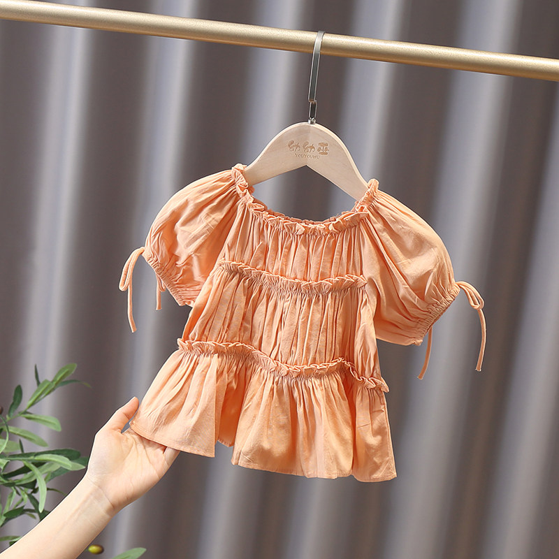 Girl baby short-sleeved t-shirt foreign style 2022 new summer children's solid color thin section girl's puff sleeve doll shirt