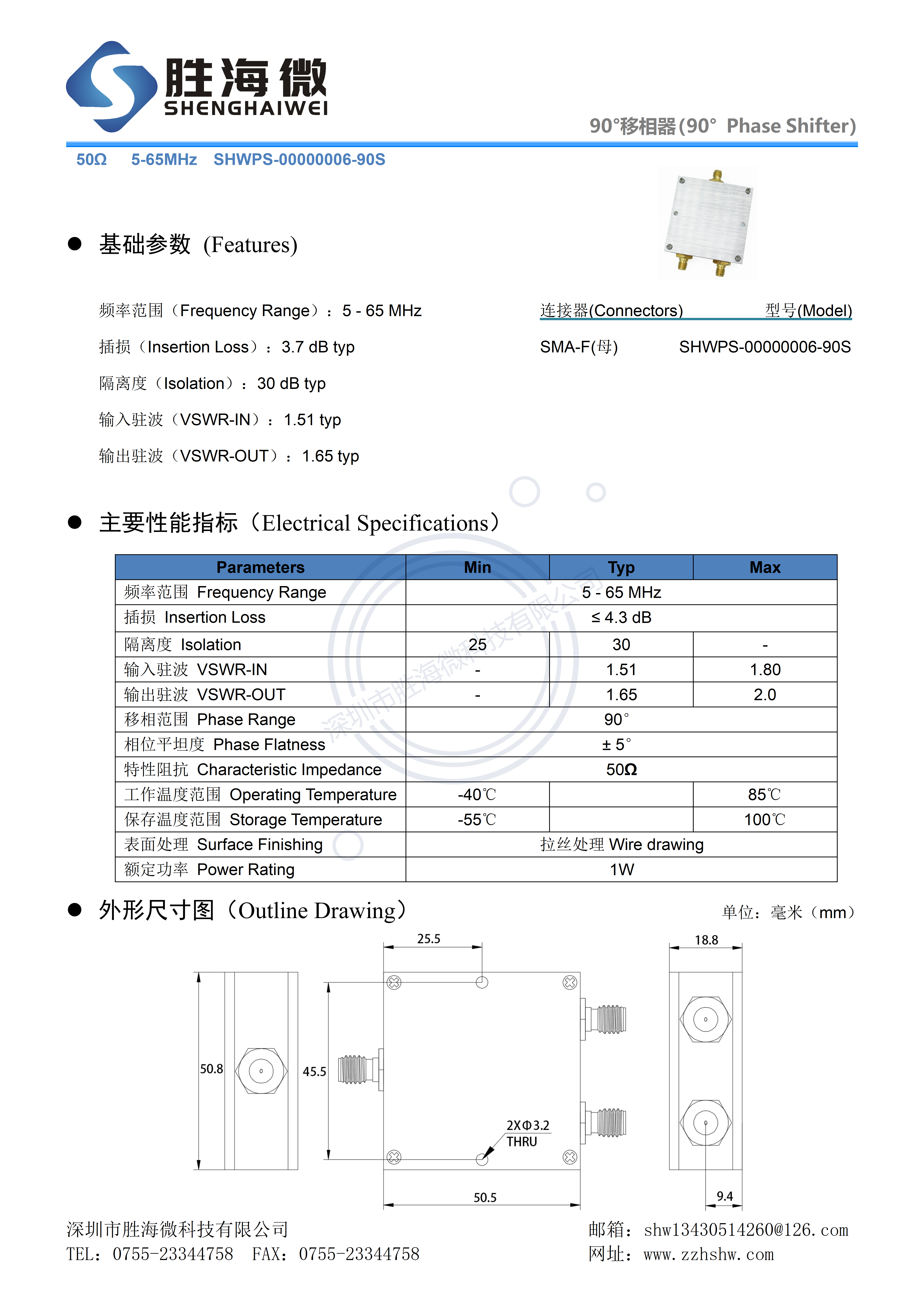 SHWPS-00000006-90S SHWPS-00000006-90S 5-65MHz SMA Radio Frequency Low Frequency 90-degree Fixed Phase Shifter