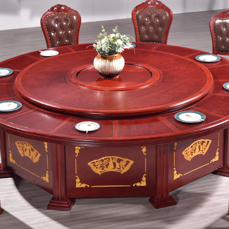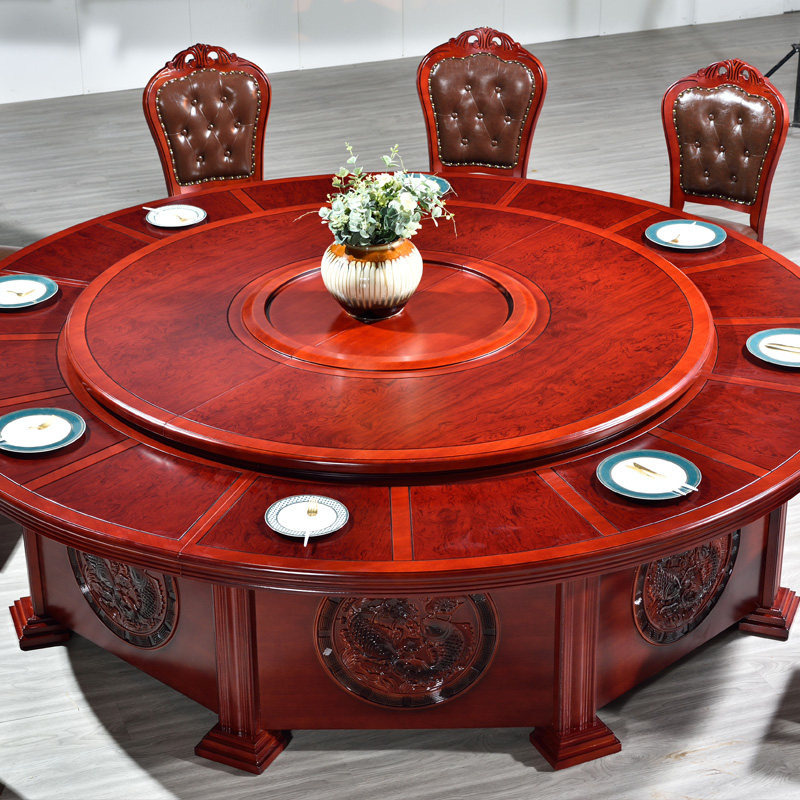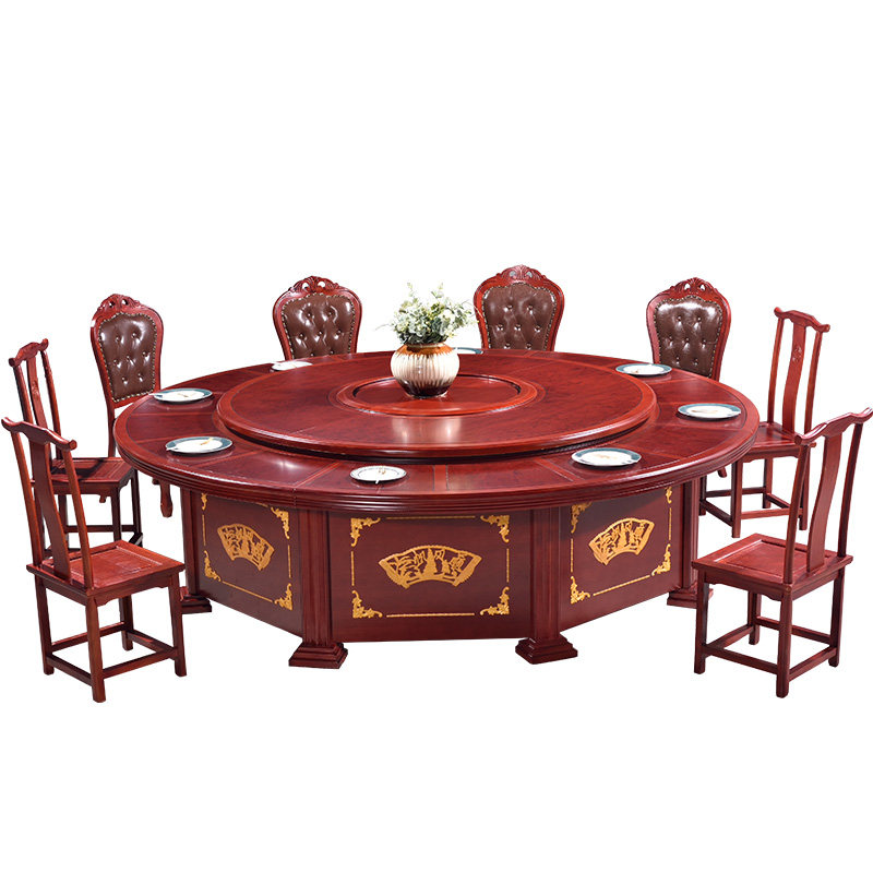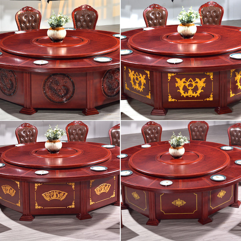 Hotel Electric Dining Table Big Round Table With Turntable 15 People 20 People Hotel Bag New Chinese Solid Wood Hotpot Dining Table And Chairs
