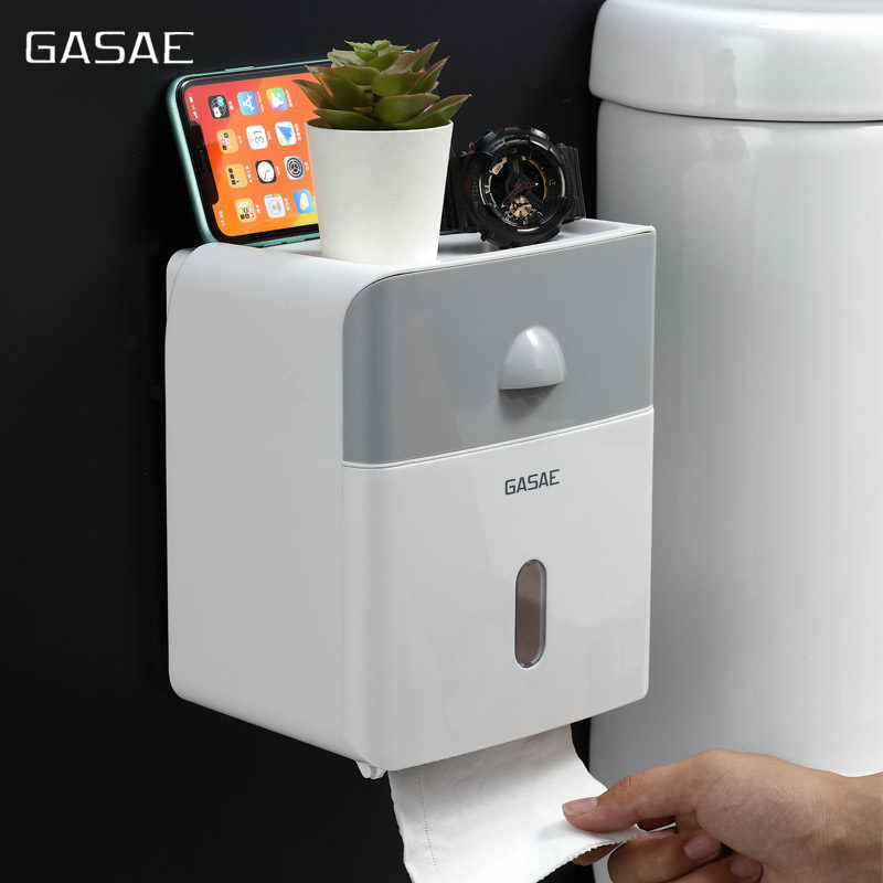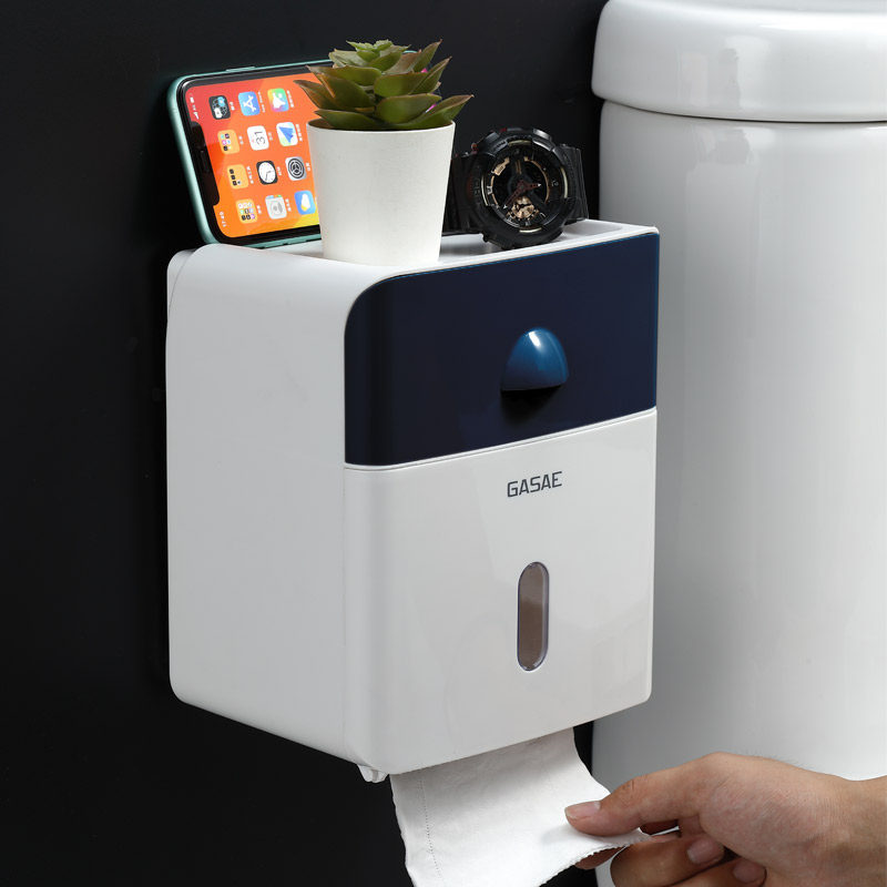Powder room non-perforated tissue shelf Toilet household creative nail-free incognito wall-mounted toilet paper box Roll toilet paper tube