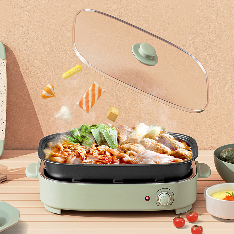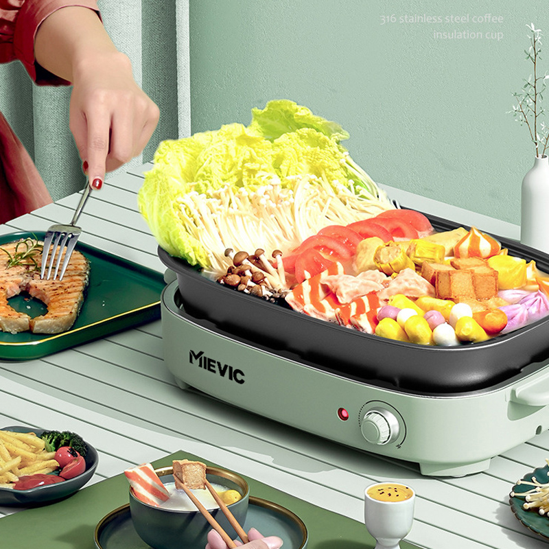 Grilled meat pot household multi-purpose cooking pot cooking, frying, roasting, two-piece electric grill pan, grilled fish, barbecue hot pot, multi-purpose pot