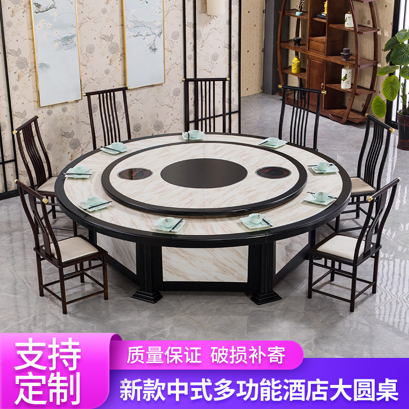 Hotel dining table Electric large round table Dining table 15 people 20 people custom automatic turntable Hotel box Hot pot large round table