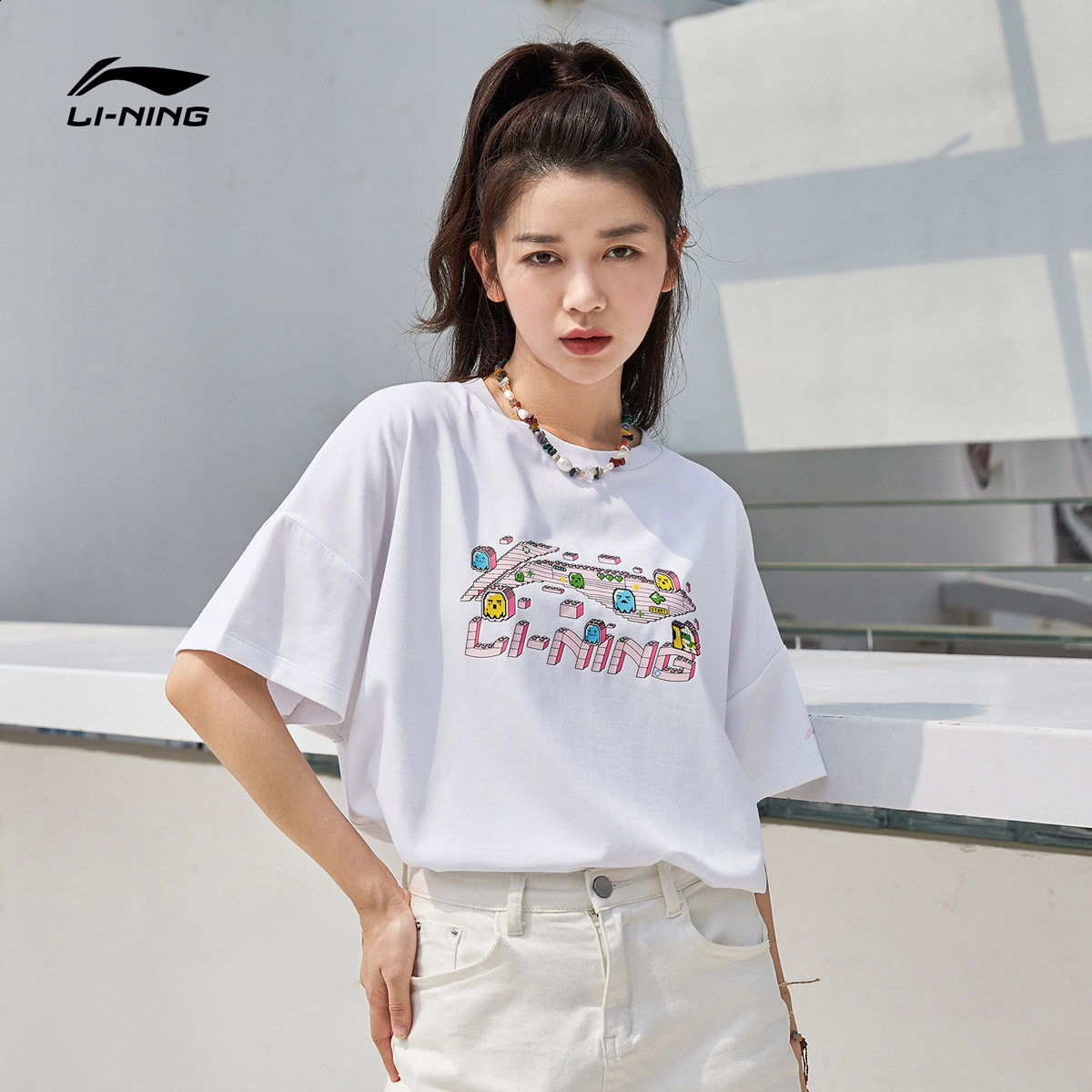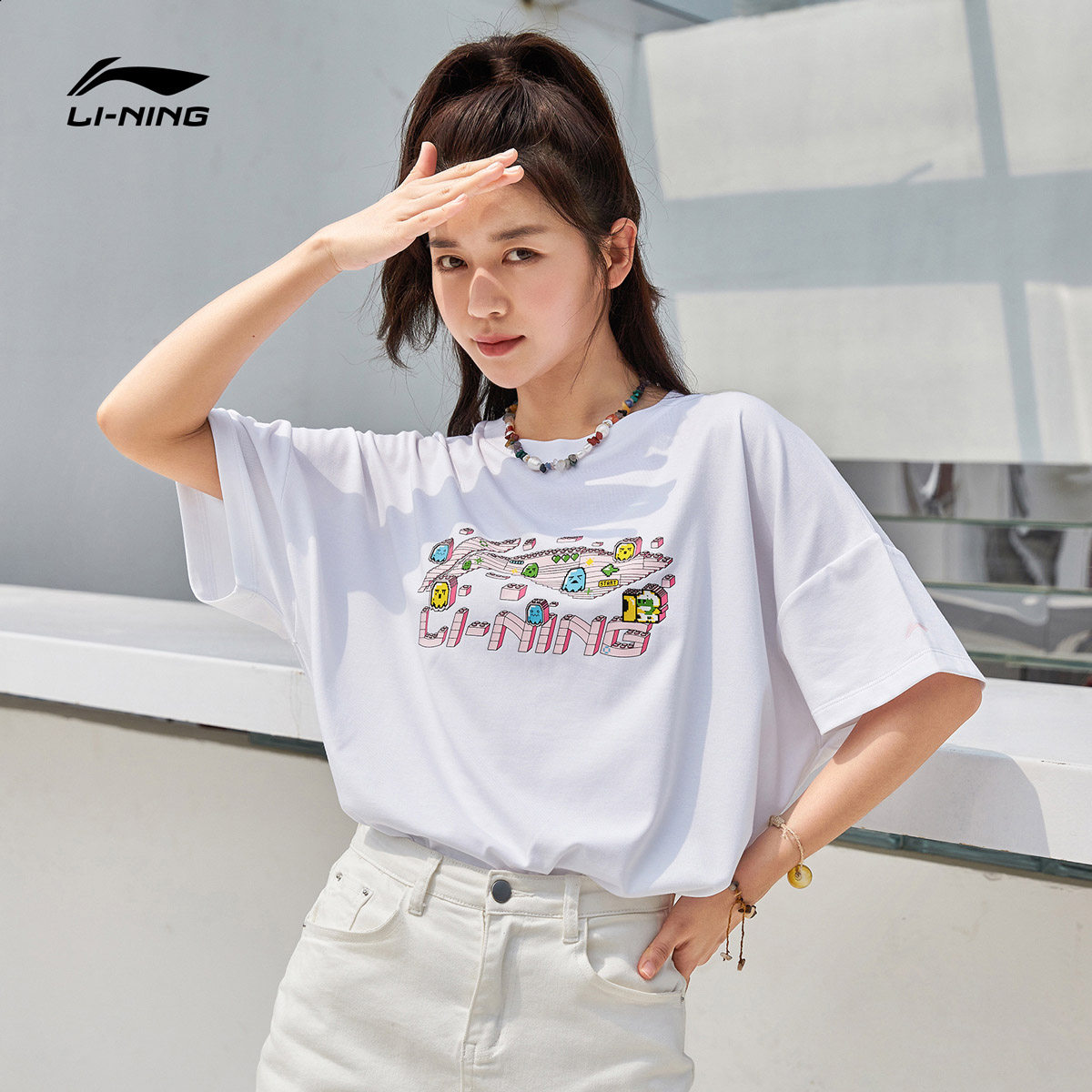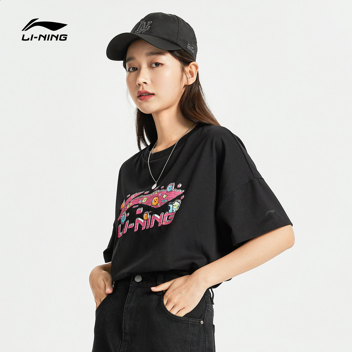 Li Ning short-sleeved women's 2021 summer new casual round neck women's graffiti loose top printed sports T-shirt women