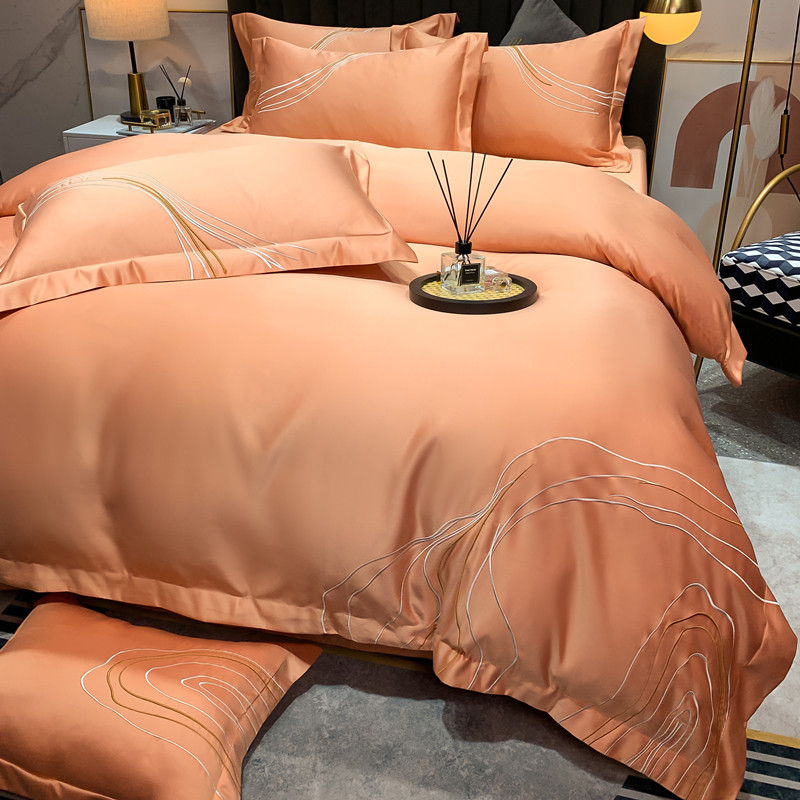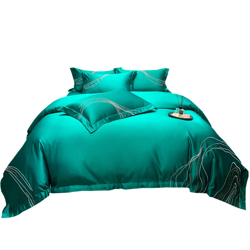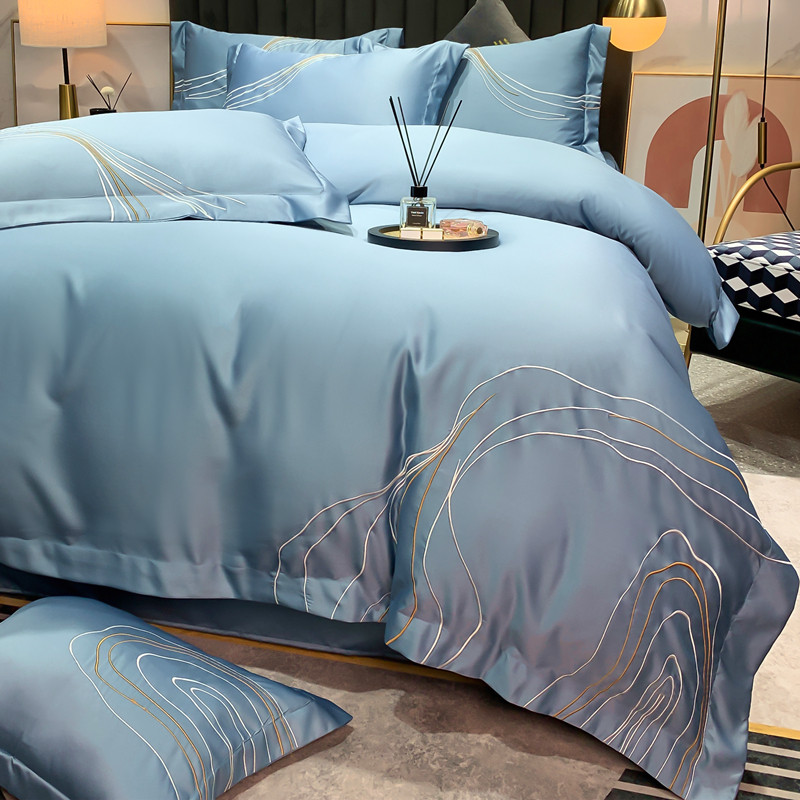 Light and luxurious European-style double-sided ice silk embroidery with four sets of tenor quilt cover real silk sliding bed linen summer bed supplies