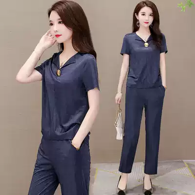 This year's popular professional suit female 2021 new summer elegant temperament short-sleeved V-neck top with casual straight pants