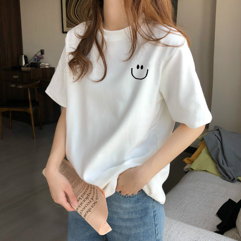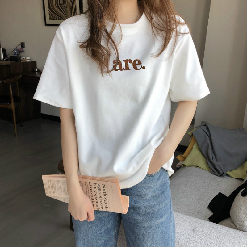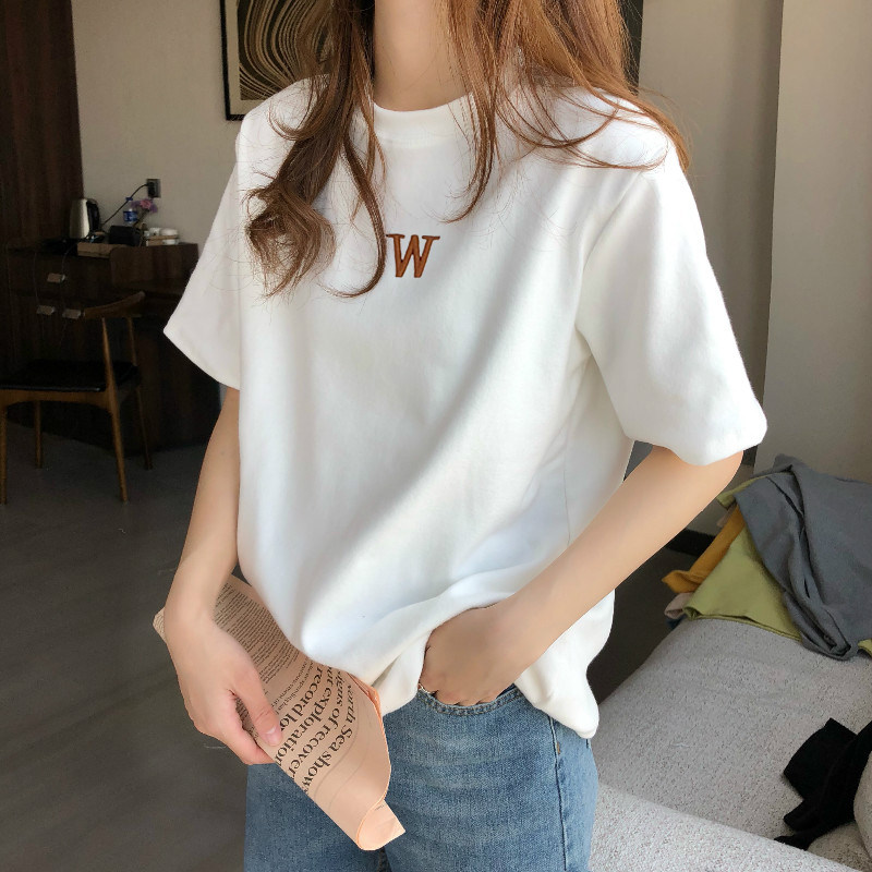 White short sleeve T-shirt female loose 2021 Summer new pure cotton beating bottom T-shirt round neck blouses blouses