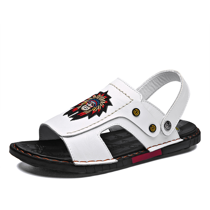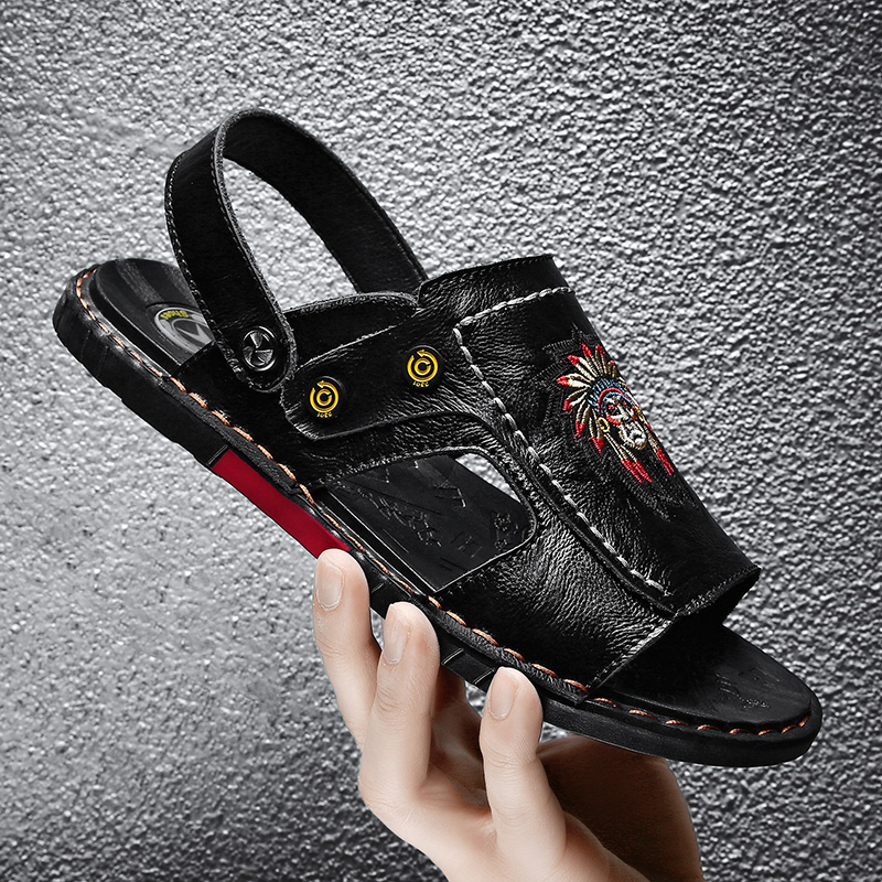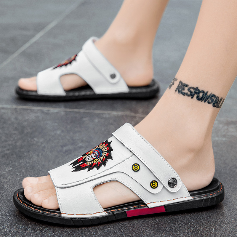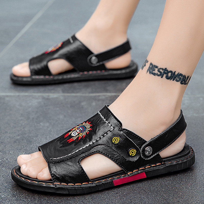 Men's sandals ins tide summer leather soft bottom non-slip beach shoes 2022 new casual wear driving slippers