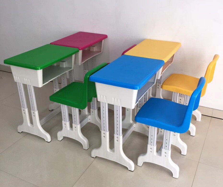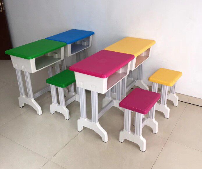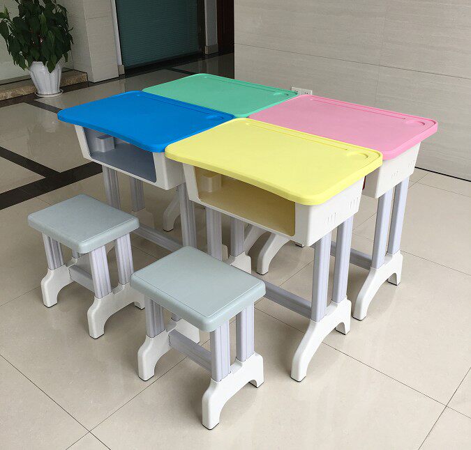 Kindergarten plastic table and chairs primary and middle school students single double plastic steel table and chairs coaching class training lift desk desk stool
