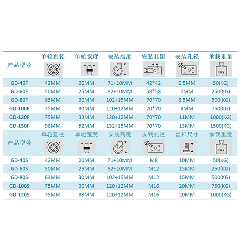 Fuma wheel 40F60F80F100F120F150FS type equipment level adjustment screw rubber support universal wheel